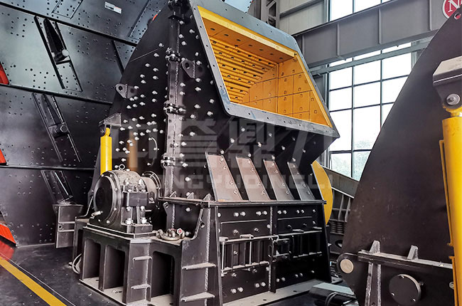 大塊原料通過給料機均勻的進入重錘破碎機的破碎腔,進入破碎腔后物料會先由高速旋轉的錘頭進行打擊完成初次破碎,同時會被打擊到機殼內部的襯板上再次進行破碎,直到小于出料口縫隙的物料從出料口排出,大于出料口的物料會重復上面的破碎,繼續被錘頭打擊,直到小于出料口被排出。