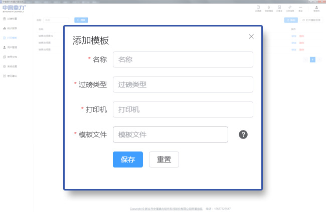 可添加、刪除票據(jù)模板,并根據(jù)系統(tǒng)內(nèi)置的變量,對(duì)模板中的模板名稱、過磅類型、模板文件名等自定義設(shè)置,根據(jù)不同場(chǎng)景選擇打印票據(jù)模板;