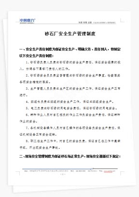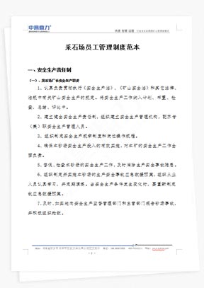 提供礦山運營管理制度、砂石廠生產管理規章、采石場安全生產標準化文件下載,涵蓋崗位職責說明書、設備操作規范、應急預案模板等全流程文檔,助力企業合規高效運營。