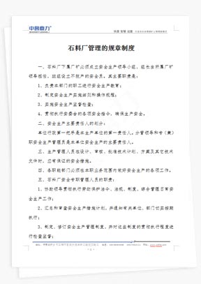 為加強石子廠管理,提高工作效率,確保生產安全,維護公司利益,特制定本制度。本制度適用于石子廠所有員工,包括管理人員、技術人員和操作人員。