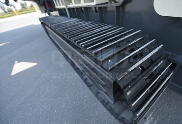 移動式建筑垃圾破碎機是以履帶作為載體,給料、破碎、輸送、電控柜和液壓系統等均固定在底盤機架上,無需牽引,靈活性走,可以在河灘、山坡等不同工況條件下行走作業,更適合建筑垃圾分散性作業的特點。