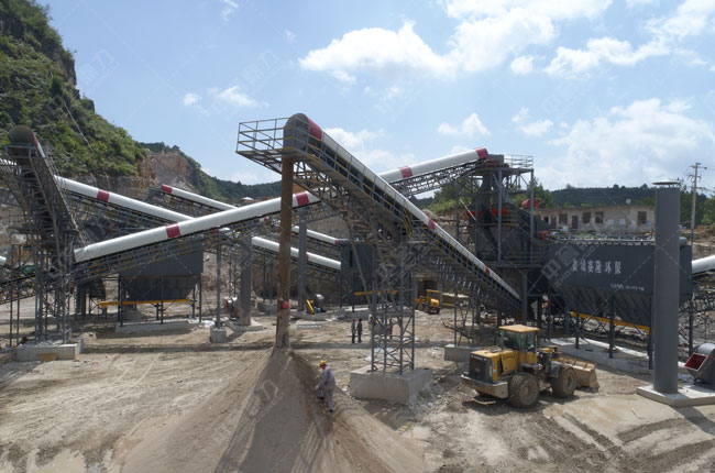 日產(chǎn)5000方石料生產(chǎn)線設備封閉設計,配有除塵器,生產(chǎn)粉塵小