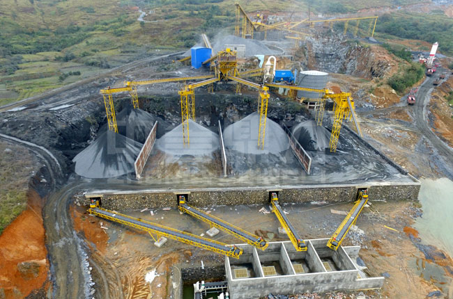 設備配置:ZGC1550振動給料機+PCZ1615重錘式破碎機+ZSJ1416雙轉(zhuǎn)子制砂機+2YKZ2470振動篩4臺+3YKZ3070振動篩2臺