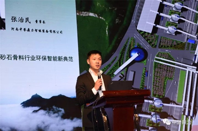 河南中譽鼎力智能裝備有限公司董事長張治民、副總經理原文秋受邀出席會議。張治民董事長發表了《打造內砂石骨料行業環保智能新》的主旨演講,以公司新建時產3000噸環保智能砂石骨料生產線為實例,分享了中譽鼎力砂石骨料生產線創新技術應用成果及傳統生產線落后技術的解決方案,與行業內、學者進行交流和探討。