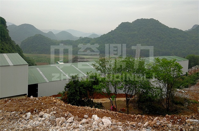 項目產量:600-800噸 應用域:混凝土攪拌站、基礎設施建設等 選用設備:中譽鼎力PCZ1815重型錘式反擊破碎機、PC1216整形式破碎機等 設計亮點: ①生產線環節封閉,杜粉塵噪音污染; ②料棚封閉,避免石料露天堆放對大氣產生污染; ③選用中譽鼎力DCS中控管理系統、自助裝車系統,提高生產線運行效率; ④兩段式破碎設計,使成品料質量更高。 兩段破碎流程:先將石灰石進行粗破,然后再經過細碎破碎階段,得到成品骨料。加工完成的骨料可以供混凝土攪拌站使用,實現石料生產與下游產業鏈的融合,市場前景廣闊。 該生產線目前已經接受靈川縣環保局、土局、林業局等部門的初步驗收,并且還在不斷的升級完善當中,包括廠區綠化、道路硬化、安裝除塵器等,將打造成為桂林市砂石骨料生產企業!生產線部驗收完畢后,將于近期正式投入生產