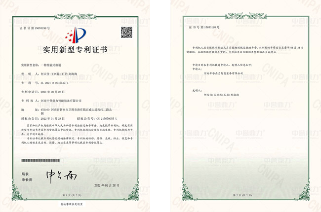 2021年4月,在中譽鼎力創始人張永的啟發下,何天佳帶公司團隊創新研發出一種快速裝配式波紋腹板鋼廊道,不僅可以實現工廠車間化加工、項目現場模塊化安裝,還具有結構穩定、經濟適用、外形美觀、維護簡便、設計周期短、安裝速度快等優勢,當年8月便獲得了國家實用專利。