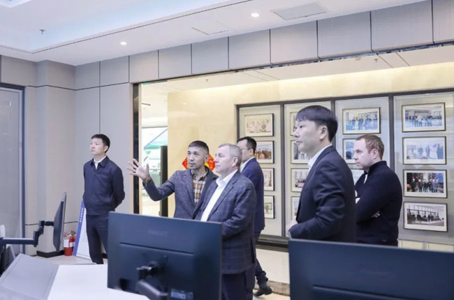 考察團先來到綠色建材大數據中心,了解中譽鼎力自主研發的礦山智能化管理系統和砂石生產3D可視化運維。馬馬德什市長伊萬諾夫表示,這樣的礦山生產管理方式和系統平臺,值得在馬馬德什市推廣,提高當地建材產業的管理效率和效果。