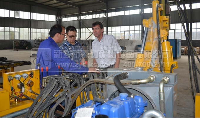 Colin 和 Craigo要為其公司選購能同時左右平移及左右偏移角度的鉆機設備,其之前已準備購買德的某種鉆機,但終因其高額的價格而退避三舍,為此他們來到中尋找類似德鉆機的廠家。在參觀廠房及鉆機廠并親眼看到鉆機運行后,客戶表現(xiàn)出了大的好奇和興趣,并與工程師交流了一些技術(shù)問題和要求。得到滿意的回答后進而與外貿(mào)經(jīng)理溝通具體的合作事宜。
