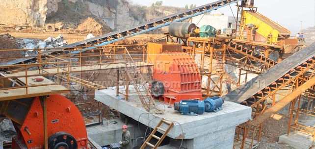 新鄉鼎力礦山設備有限公司根據市場需求,結合家政策,所研發生產的砂石設備技術走在科技前沿,其生產的破碎篩分設備在內市場有很高的占有率,生產的石灰石生產線是自動化程度高,生產效率高,運行成本低,產量大,收益好,成品石子粒度均勻、粒形好,符合家用料要求。整條生產線除了對設備的開機停機及日常維護之外,幾乎不需要人工操作的。中譽鼎力的石灰石生產線由鄂式破碎機(粗破)、反擊式破碎機(細破)、石灰石破碎機、振動給料機、振動篩、洗砂機、皮帶輸送機、集中電控等設備組成,為滿足客戶不同需求,可配套圓錐破碎機、除塵設備等。其中,石灰石使用單段錘式破碎機破碎,有著顯著的效果: