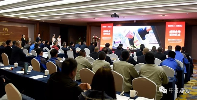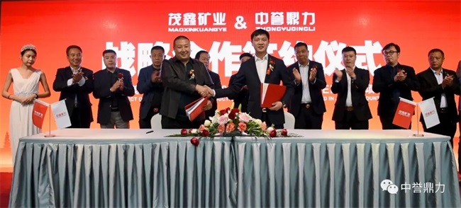 河南中譽鼎力智能裝備有限公司董事長張治民、副總經理張永臣、中譽鼎力河北服務總經理胡震森、中譽鼎力服務總監徐浩;茂鑫礦業有限公司股東——河北新集團董事長邢建勇、河北中紅集團董事長李力、北京中會人信投資有限公司董事長劉仁錄,茂鑫礦業有限公司總經理畢玉江、副總經理馮海廷等出席了簽約儀式。