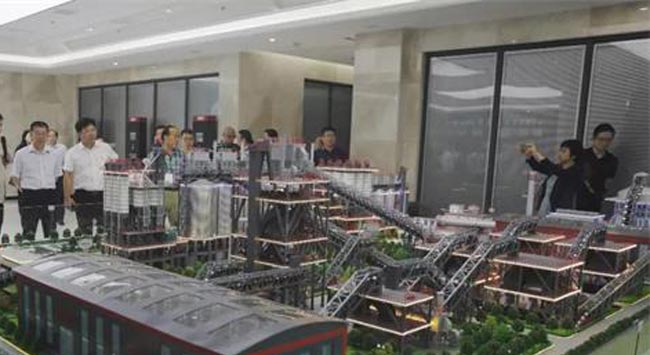 考察團(tuán)一行參觀中譽(yù)鼎力五位一體循環(huán)建材產(chǎn)業(yè)園項(xiàng)目沙盤