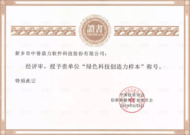 中譽鼎力軟件科技股份有限公司成功入選中綠色科技創造力樣本,是公司堅持綠色低碳可持續發展的本質要求,標志著中譽鼎力在綠色發展方面邁向了新的臺階,彰顯了企業履行社會責任的使命和擔當。