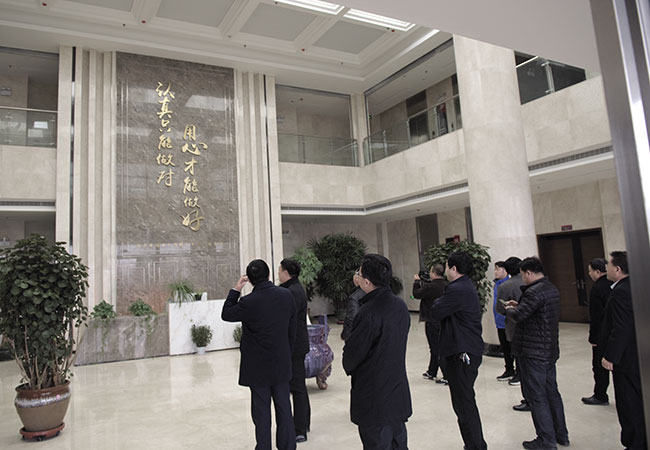 隨后,考察團又來到中譽鼎力智能裝備有限公司,對中譽鼎力的企業(yè)文化進行了了解,并參觀了智能化一體生產(chǎn)車間。