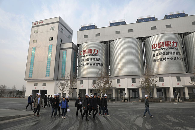 河南中譽鼎力智能裝備有限公司董事長張治民、中譽重工總經理兼銷售總監陳樹凱、湖北服務總經理孫利江陪同,并詳細介紹各項情況。考察團先參觀了中譽鼎力在衛輝承建的代表項目——藍天環保材料有限公司四位一體建材項目和中譽鼎力EPC承建的資源有限公司時產3000噸砂石骨料生產線。