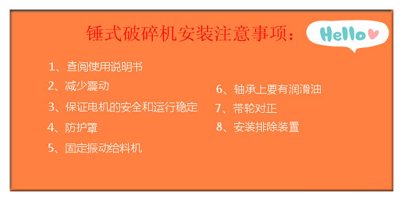 單段錘式破碎機主要是用于破碎中等硬度且脆性高的物料,(錘式破碎機可以破碎哪些物料呢?)它一般不配帶蓖條,防止堵塞,在正式投產使用之前,需要有一個很好的安裝方案,才可以減少在以后使用中出現的麻煩,該方案中,主要介紹以下8個方面。