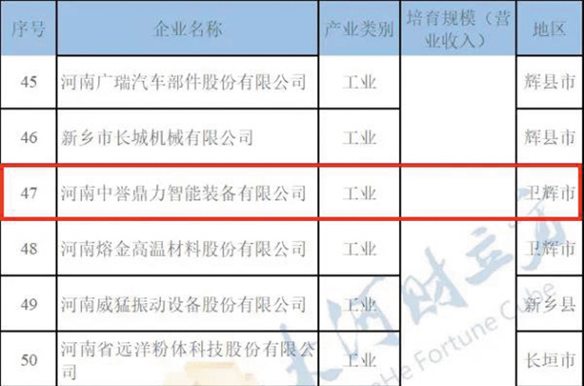 同時,《計劃》發布了新鄉市“3513”大企業(集團)培育名單,河南中譽鼎力智能裝備有限公司入圍。