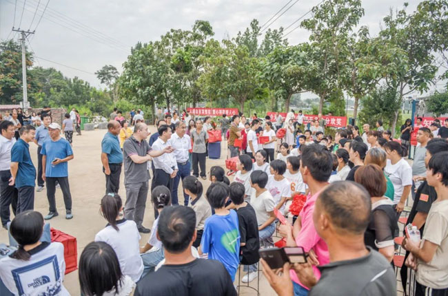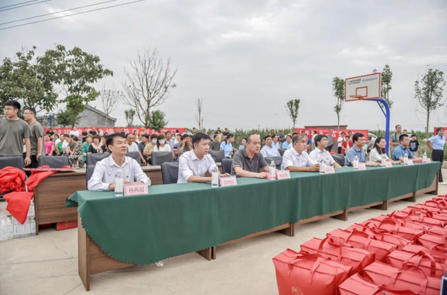 8月26日下午,衛(wèi)輝市委常委、辦公室主任、太公鎮(zhèn)黨委書記胡良,衛(wèi)輝市副市長孫建明,衛(wèi)輝市政協(xié)副主席崔福明,共青團衛(wèi)輝市委書記鄭鑫,衛(wèi)輝市教育局局長孫西,衛(wèi)輝市教育局副局長焦元玉,衛(wèi)輝市太公鎮(zhèn)黨委副書記、鎮(zhèn)長劉營斌,周邊32個村支部書記、受資助學生及家長、村民代表共計200余人參加捐贈儀式。