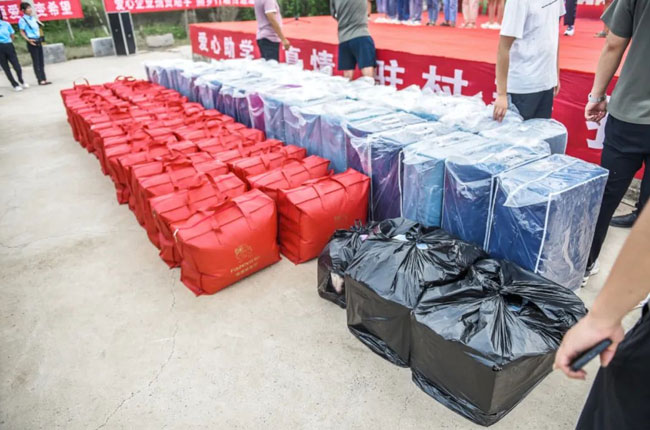 張治民董事長代表藍天環(huán)保材料公司,現(xiàn)場為古子澗村大學生和被衛(wèi)輝一中錄取學生發(fā)放數(shù)萬元愛心物資,包括每名學生1000元現(xiàn)金,行李箱、太空被等學習生活用品。他對考入理想學府的學子們表示祝賀并予以激勵,希望同學們無畏困難,磨煉意志,自信自立,不斷充實和提高自己,為社會、為家鄉(xiāng)貢獻自己的力量!