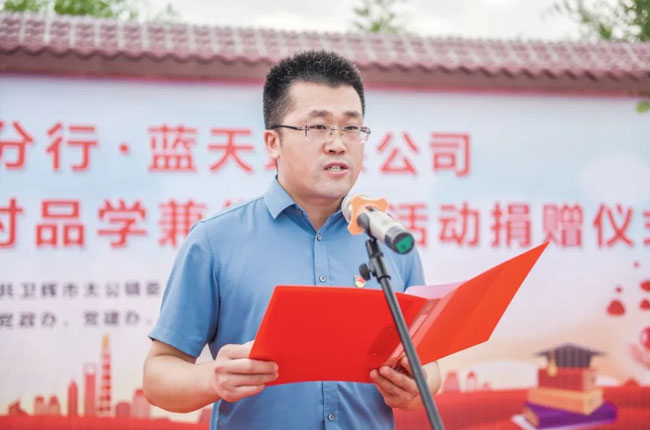 捐贈儀式現(xiàn)場,衛(wèi)輝市太公鎮(zhèn)黨委副書記、鎮(zhèn)長劉營斌表示,此次捐資助學,大愛無邊。他對中譽鼎力熱心公益的社會責任與企業(yè)擔當給予,希望受捐贈的同學們銘記捐贈企業(yè)對大家的深情厚愛,努力學習、奮發(fā)圖強,立志成才、報效家鄉(xiāng)。