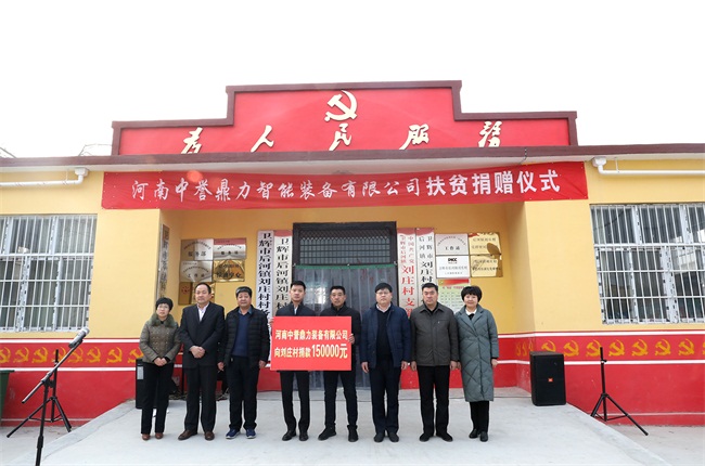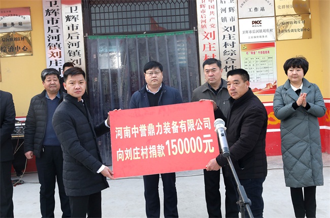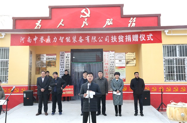 河南中譽(yù)鼎力智能裝備有限公司董事長張治民發(fā)表講話:“中譽(yù)鼎力作為土生土長的衛(wèi)輝企業(yè),離不開的關(guān)心和百姓的支持。公司牢記社會責(zé)任,積響應(yīng)扶貧工作,落實(shí)‘企業(yè)分包貧困村’政策,與后河鎮(zhèn)劉莊村結(jié)對幫扶。經(jīng)公司研究決定,河南中譽(yù)鼎力智能裝備有限公司此次向劉莊村捐款15萬元,主要用于劉莊村的基礎(chǔ)設(shè)施建設(shè)。”
