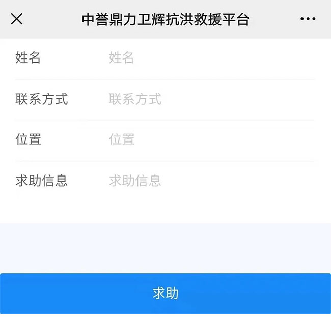 求助者(暫限衛輝地區)在平臺填報姓名、聯系方式、位置和求助信息后,中譽鼎力臨時成立的救援平臺客服統一進行信息收集,按照提報時間聯系求助者,并根據緊急情況與公司抗洪救援隊實時溝通,開展及時的救援行動。而外地救援隊也可以在平臺上看到救援信息,直接聯系進行施救。