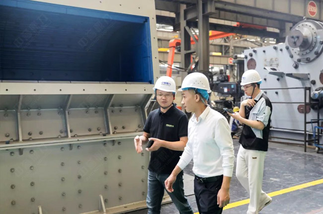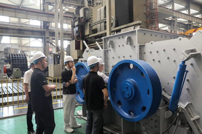 在觀摩過程中,參觀團(tuán)查看了中譽(yù)鼎力破碎機(jī)、制砂機(jī)產(chǎn)品,并了解了產(chǎn)品的特點(diǎn)、原理和性能優(yōu)勢(shì)。