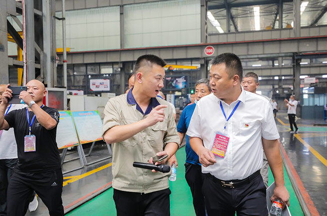 之后,考察團一行實地參觀了中譽鼎力智能化一體生產車間,對中譽鼎力智能化車間建設、礦山設備制造等情況進行了高度評價。