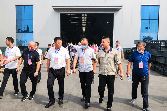 當天上午,考察團一行蒞臨中譽鼎力參觀調研。河南中譽鼎力智能裝備有限公司行政副總經理崔玉清、企管部長吳澤朋程陪同,并介紹公司各項情況。