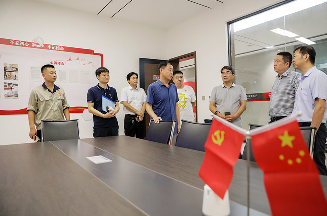 中譽鼎力黨建指導員王世存、公司行政副總經理崔玉清、黨支部書記吳澤朋程陪同,并匯報了公司黨建陣地建設、主題活動開展、黨員隊伍發展等各項工作情況。