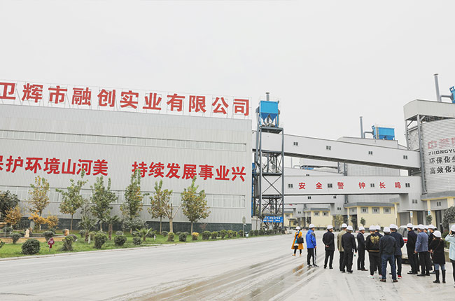 然后,考察團一行前往中譽鼎力投資建設的多位一體循環建材產業園項目——衛輝市藍天環保材料有限公司“四位一體”大型建材項目實地參觀。參觀期間,考察團成員不僅對該項目所具備的綠色、智能、集約、等優勢有了進一步認識,并在生產現場一睹中譽鼎力履帶式錘破移動破碎站的風采。