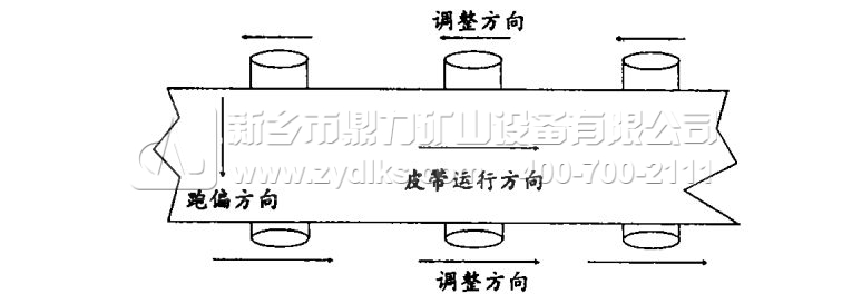 上圖為皮帶機(jī)跑偏調(diào)整的示意圖