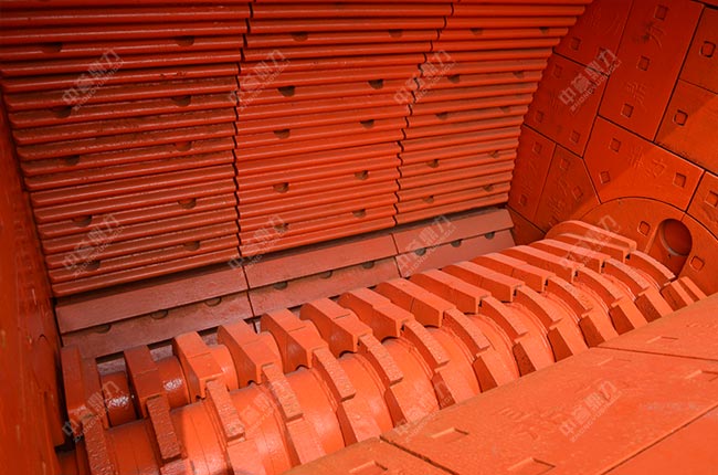 襯板安裝在破碎機內壁,從下圖可以看到,側襯板與反擊襯板不一樣,反擊襯板采用的是波紋狀,性更高。