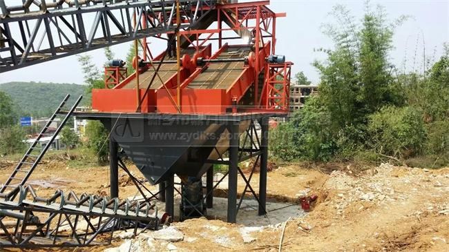 該條時產400噸砂石生產線先經過PCZ重型錘式破碎機進行破碎,然后進入PCX整形錘式破碎機,破碎后的物料經振動篩篩分分級后,符合粒度大小的石子被傳送至成品料堆,不符合的物料被傳送帶重新傳送至上道破碎設備進行再次破碎,這就形成了閉路循環模式。這是一條節能的石料生產線,我們的錘式破碎機不僅破碎比大,產量高,而且整形效果好,所生產的石子粒度均勻,粒型立體,針片狀含量少,獲得了我們新老客戶的一致稱贊。