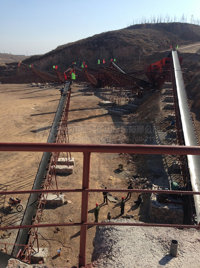 從時(shí)產(chǎn)500-800噸大型石灰石石料生產(chǎn)線現(xiàn)場實(shí)拍圖中看到,數(shù)條皮帶輸送機(jī)向不同的流程輸送,這些皮帶機(jī)均是由我公司技術(shù)工程師為客戶量身制作的,各個(gè)生產(chǎn)流程配合良好,終完成成品骨料的生產(chǎn),成品骨料質(zhì)量達(dá)到較高的。