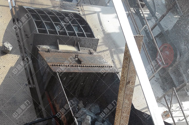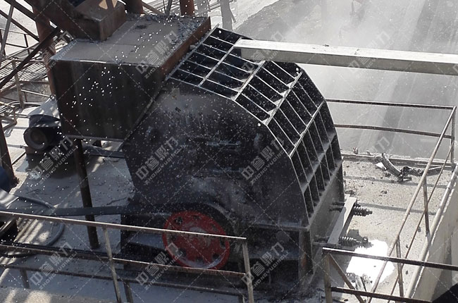 粗碎——原料經振動給料機均勻的送到重型錘式反擊破碎機PCZ1615進行加工破碎