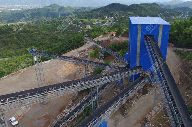 原料經(jīng)給料機(jī)均勻的送到PCZ1615重型錘式反擊破碎機(jī)進(jìn)行粗碎,粗碎后的物料被輸送到送到一組2YKZ2470振動篩并篩進(jìn)行篩分,篩分出1-3成品料,小于1-3的料被輸送到下一組2YKZ2470振動篩并篩進(jìn)行再次篩分成1-2、0-5和石粉三種成品料,篩分出來的0-5被輸送到下一臺3YKZ3070進(jìn)行篩分,篩分出0-5和石粉兩種料,大于1-3的料被輸送到一臺ZSJ1416雙轉(zhuǎn)子整形破碎機(jī)進(jìn)行整形,經(jīng)過再次加工的物料被輸送到一臺3YKZ3070振動篩進(jìn)行篩分,后篩分出1-2和1-3兩種成品料。
