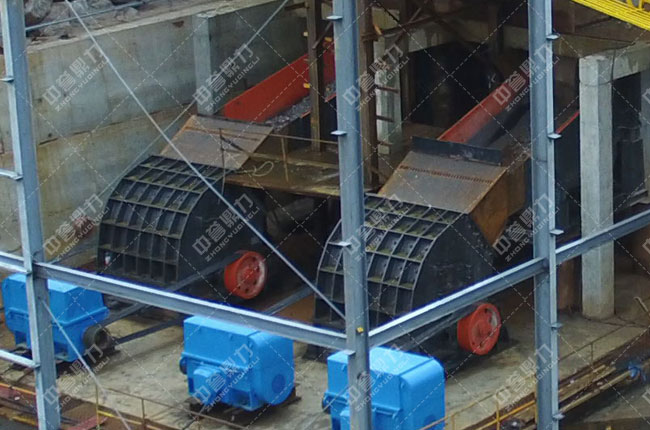大塊石料經(jīng)ZGC2050振動給料機均勻、連續(xù)的送到PCZ1620重錘破進行破碎,破碎后的物料被送到中轉(zhuǎn)料倉,再由兩臺ZGC2038給料機送到兩臺PC1220整形錘破進行整形加工,經(jīng)過再次加工的物料被輸送到一組3臺3YKZ3070振動篩進行篩分,篩分出1-3以下的石料、土石粉和一部分回料,1-3以下的料被輸送到下一組3臺3YKZ3070振動篩進行再次篩分,回料被返料帶返回整形錘破進行再次破碎,形成一個閉路循環(huán),終篩分出1-3/1-2/0-5和石粉四種成品料。