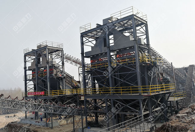 設(shè)備配置:振動(dòng)給料機(jī)ZGC2050*2臺(tái)、重錘式破碎機(jī)PZC1620*2臺(tái)、整形破碎機(jī)PC1220*4臺(tái)、振動(dòng)篩3YKZ40100*8臺(tái)