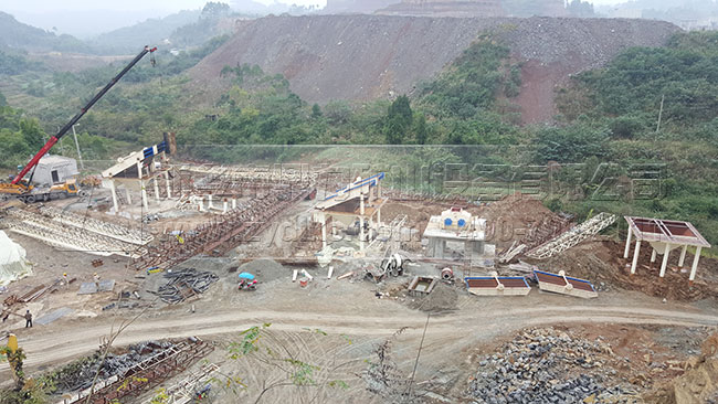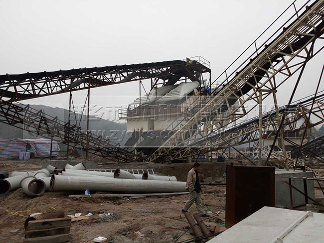 此條時產(chǎn)600噸砂石料生產(chǎn)線主要包括2臺重錘破、11臺篩分設(shè)備、2臺ZSJ1218制砂機(jī),并且配備有完備的中轉(zhuǎn)倉和環(huán)保除塵設(shè)備,設(shè)備產(chǎn)能是比較大,預(yù)計設(shè)計的產(chǎn)能是500噸,在實際的生產(chǎn)中達(dá)到了600-700噸,生產(chǎn)效果良好。