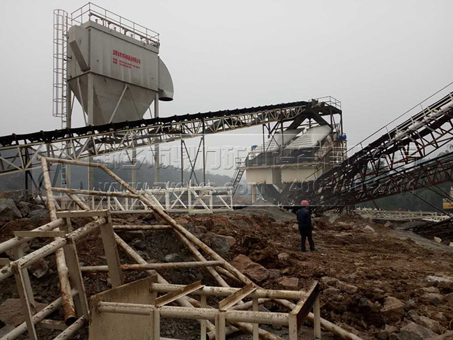 時產(chǎn)600噸砂石料生產(chǎn)線除了在生產(chǎn)規(guī)模上不斷提高生產(chǎn)產(chǎn)量之外,還采取多重環(huán)保措施,在采礦區(qū)和運(yùn)輸?shù)缆窞⑺缐m,對路面和上山道路進(jìn)行了硬化,破碎站采用封閉布袋除塵器,除塵處理達(dá)標(biāo)后再進(jìn)行排放,建設(shè)封閉式大棚,進(jìn)一步減少粉塵污染。生產(chǎn)環(huán)境得到了大大優(yōu)化。
