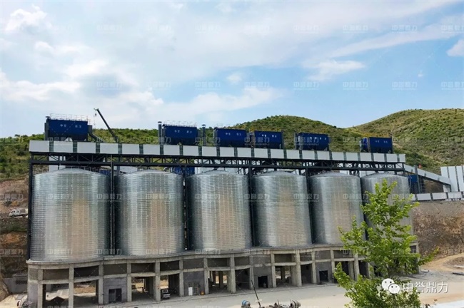 鋼板儲料罐進(jìn)行物料存儲,配備自助裝車系統(tǒng),司機(jī)刷卡按需裝車,環(huán)保、;