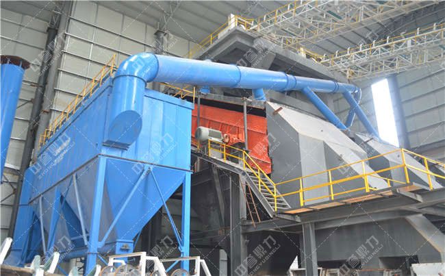 套設備可配備完整的除塵系統,從破碎進料口、出料口裝備收塵口和風道,二級破碎進料口、出料口裝備收塵口和風道、振動篩頂部和底部均配備收塵口和風道,經過集中控制所有連接口通向布袋除塵器,達到收集生產過程中產生的粉塵的目的,從而實現環保節能生產。也可在各設備單獨配套除塵器。