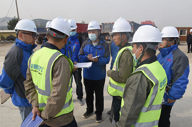 在現場,售后服務團隊各司其責,分別對這條時產1500噸砂石生產線的給料機、破碎機、制砂機、振動篩、減速機、輸送設備、散裝機、除塵設備、拉鏈機、電氣設備等進行細致檢查,并做詳細記錄。同時也向項目相關負責人就設備的日常使用保養、注意事項提出了建議。