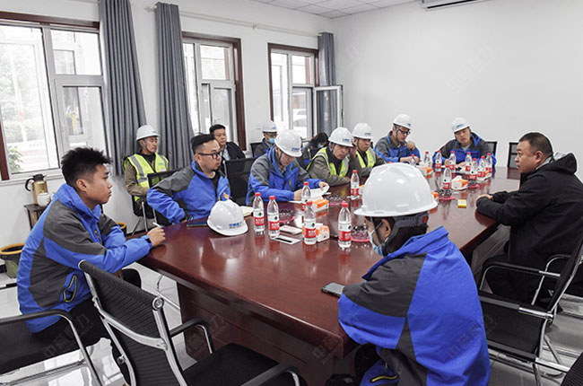 售后服務團隊在會議室與生產線負責人王總溝通了項目建設的具體情況后,來到現場查看施工狀況,并囑咐公司安裝隊精良作業,施工安裝的質量和工期。