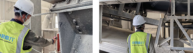 在了解到客戶反映部分配件出現磨損情況、軸承散熱不佳等問題后,售后服務團隊來到時產1000噸碎石生產線生產現場,對設備進行詳細檢查并給出解決方案。