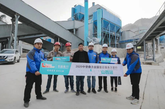 11月11日下午,中譽鼎力山西售后服務萬里行團隊一行十余人自孝義市出發,驅車前往此次走訪的第五條生產線——呂梁市文水縣吉港水泥有限公司砂石骨料廠時產1500噸骨料生產線。盡管去往生產線的山路崎嶇顛簸,卻依然沒有阻擋售后服務團隊前進的腳步。