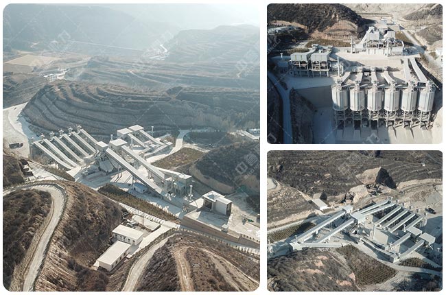 鑫錦威建材有限公司時(shí)產(chǎn)1500噸砂石生產(chǎn)線鳥瞰圖,時(shí)值初冬,植被泛黃