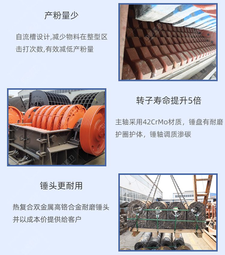 作為內生產大型錘式破碎機生產基地,根據市場需求,中譽鼎力有PCZ重型錘破和XPC整形錘破兩種,型號齊,時產量從100-3000噸不等,其中pcz2125重錘破時加工能力可達3000噸,在河南駐馬店恒強礦業(yè)、衛(wèi)輝市資源有限公司、河北井陘茂鑫礦業(yè)、河南禹州鑫利祥建材等多地已有使用。