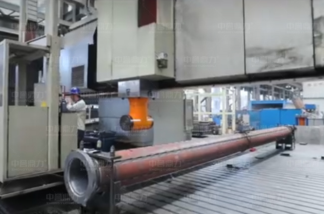 螺旋洗砂機的主軸長度有11米,機殼寬2米,市面上常見的這種主軸通常采用的是兩段進行焊接組成,而中譽鼎力則采用的是一根通體11米的主軸,通過行程作業范圍長達14米的橋式數控龍門銑鏜床一體化加工成型,經此工藝加工的主軸抗振性好,設備在運行中得到一個穩定支撐。